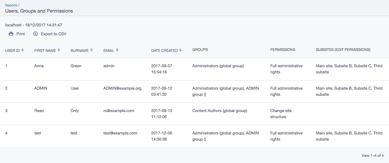 This module adds a "Users, Groups and Permissions" report in the CMS, so that an administrator can get a quick overview of who has access to the CMS.
