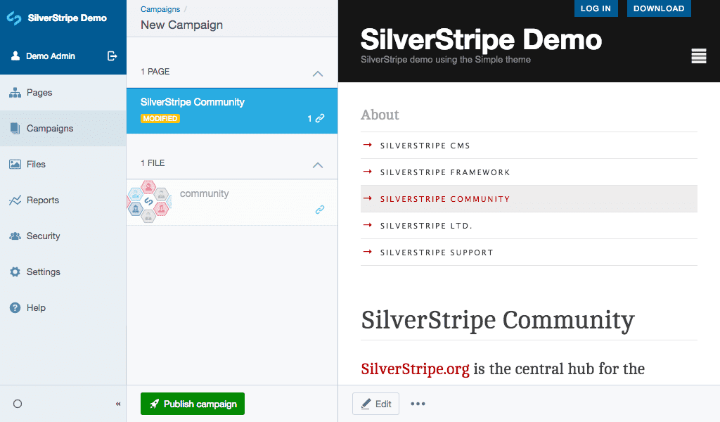 Once you have reviewed the content in a campaign and are ready to publish it, click the button Publish campaign, you will then be asked to confirm your publish action. Once a campaign is published the campaign will remain but all of the items which were either Draft or Modified will be published.