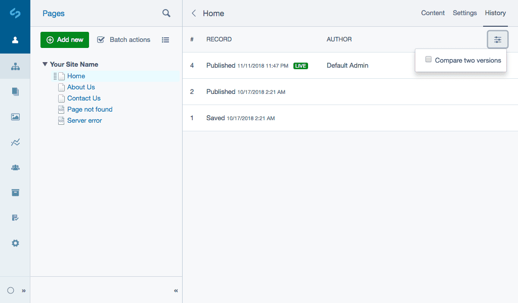 Navigate to the History tab. Similar to Pages see Comparing snapshots to learn how to view what has changed between 2 different versions of a page.