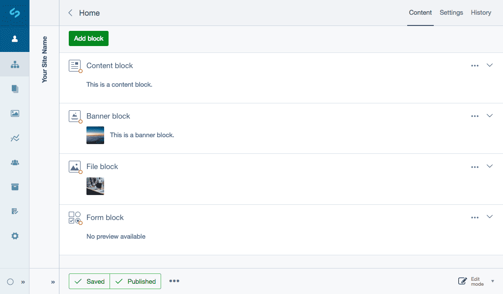 The Elemental module provides the ability for Silverstripe CMS users to break up a web page into smaller modular parts (or ‘blocks’) that allow content like banners, text and media to be independently managed within the CMS. This also allows for more targeted control over individual types of content, as well as individual versioning, more detailed reports and easy customisation for developers over how certain pieces of content are presented.