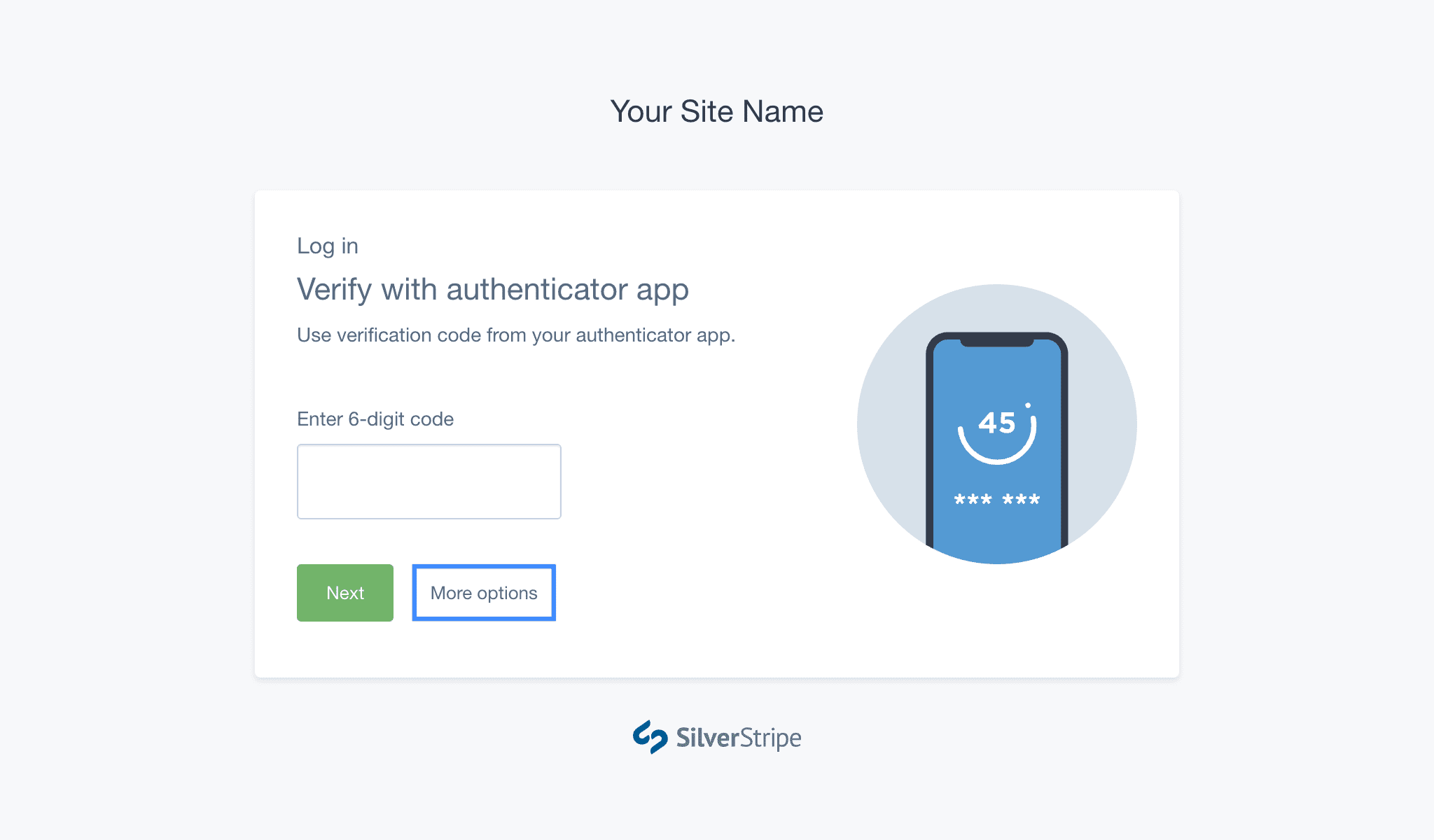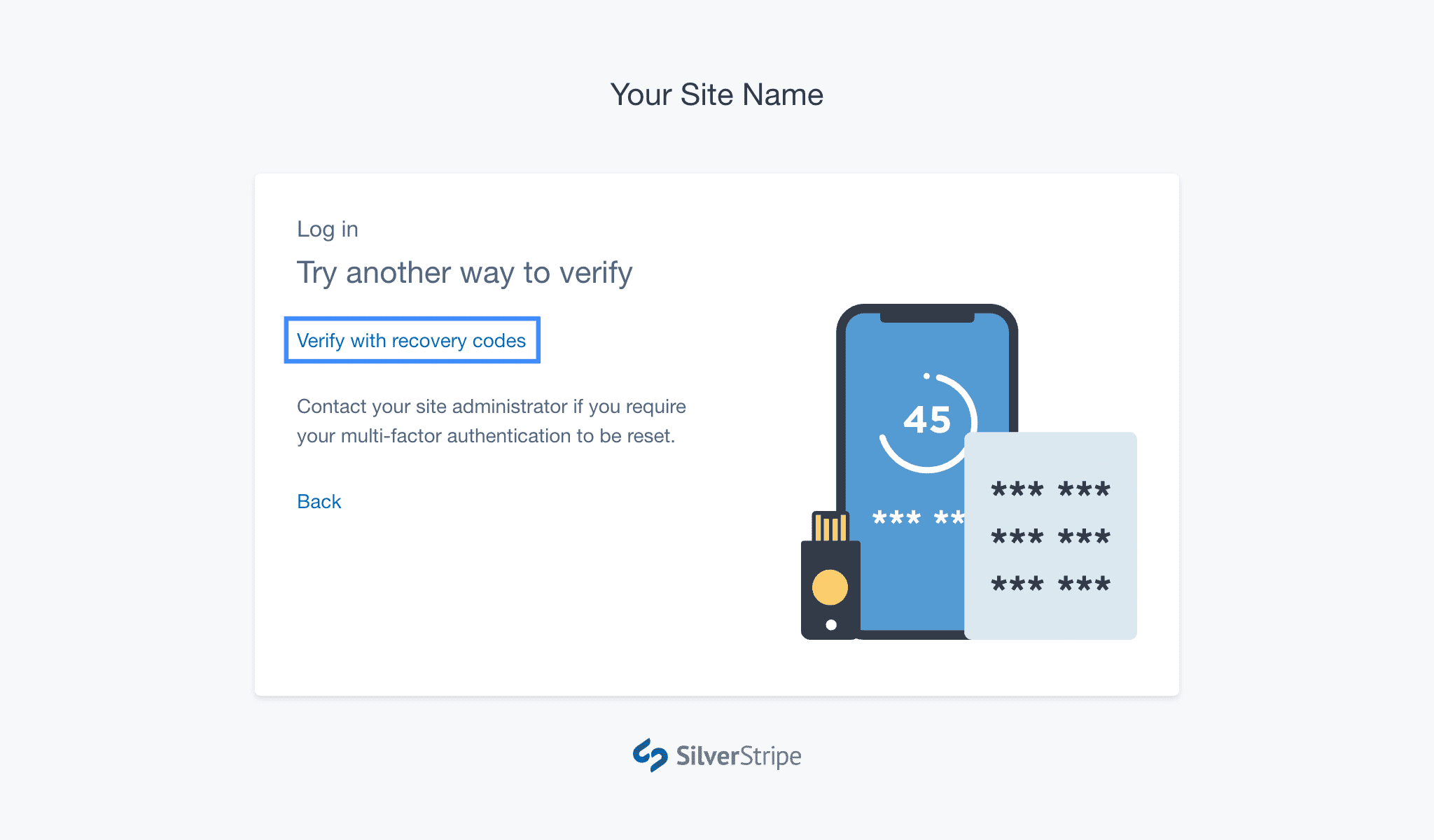 Login to your Silverstripe CMS account with your email and password. When prompted for your primary MFA method, press Other options and select Verify with backup code.